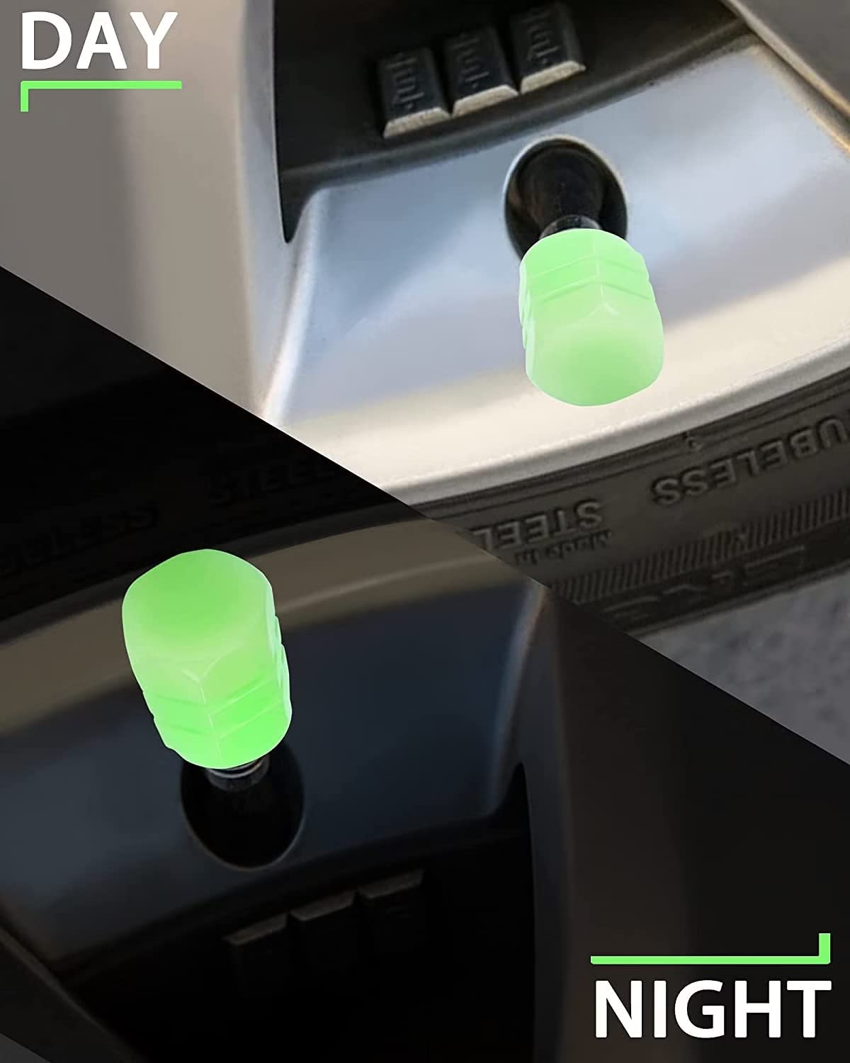 - DESIGN - The light storing material of this luminous car tire air valve cap allows it to absorb light during the day and emit light at night.