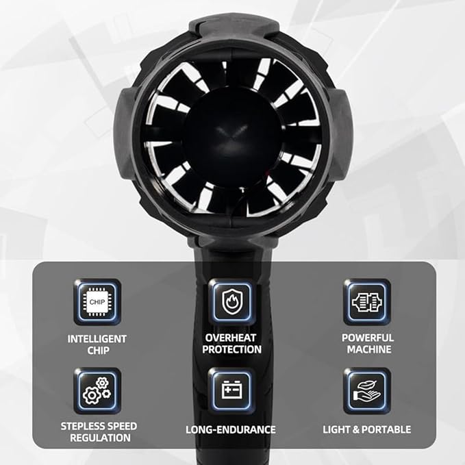 - ✨ The upgraded Version: Turbo Air Blower, offers enhanced efficiency and convenience with its innovative wind-gathering design for stronger airflow. Its wireless body ensures easy mobility, while the high-power motor delivers powerful performance. A quick battery-swapping feature allows for uninterrupted use, making it a reliable tool for cleaning and maintenance tasks.